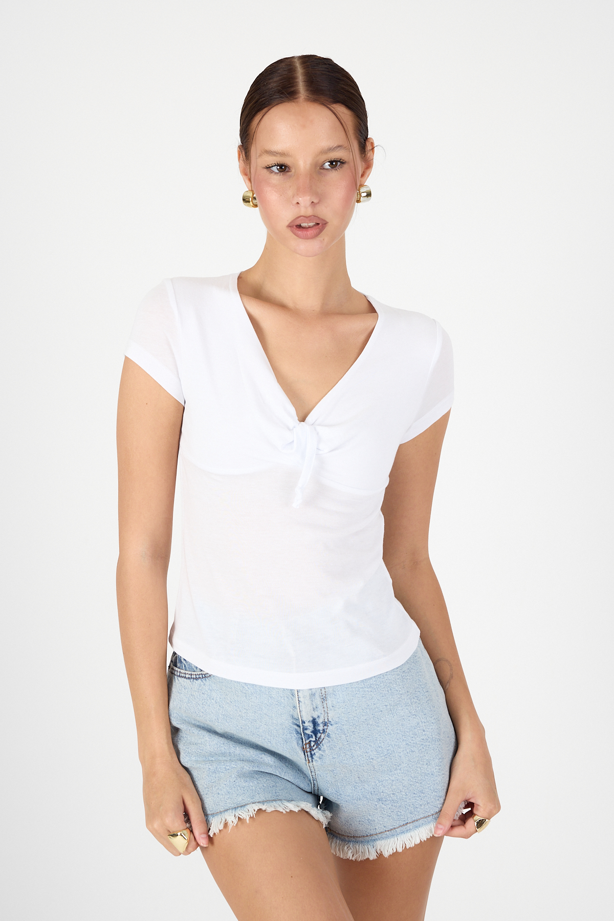 – V yaka detaylarıyla feminen çizgilere sahip olan bu body, zarifliğiyle dikkat çeker.